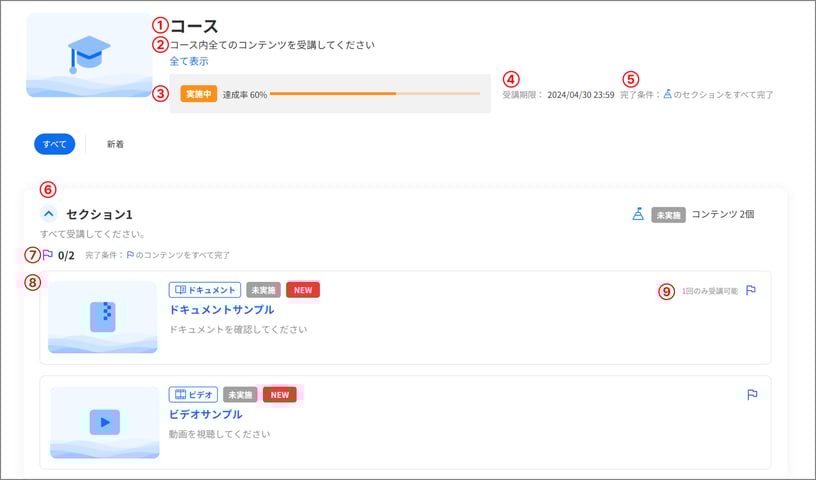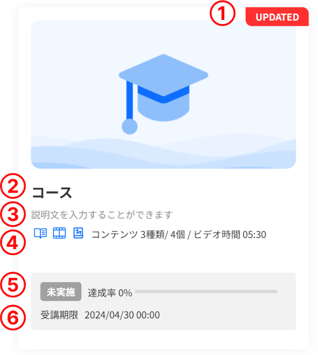 ③コース説明 コース説明が表示されます。コース説明が長い場合は、カーソルを合わせると全文表示されます。  |