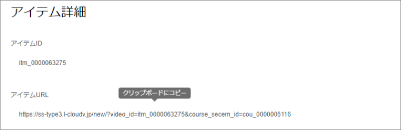 コースに紐づいたビデオのみ、URLをコピーできる機能を追加します。そのURLに受講ユーザーがアクセスすると、コースを選択せずそのまま動画を視聴することが可能になります。