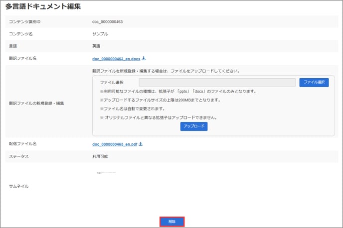 多言語表示ドキュメントを編集・削除する方法は、以下をご参照ください。