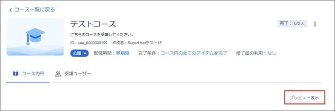 1. コース詳細画面の[プレビュー表示]をクリックする